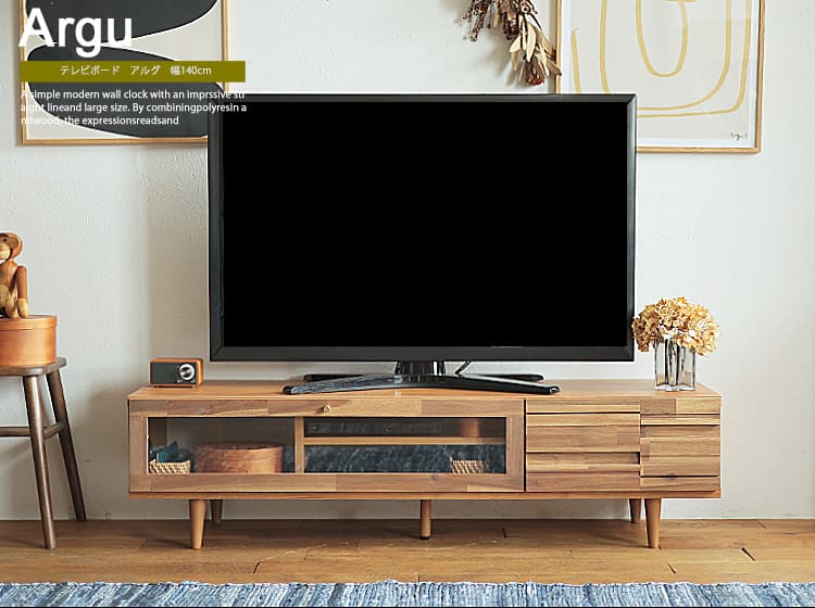 ワンルームからご家族でのご使用まで、幅広く使えるのが特徴の120cmサイズ。24型~43型のテレビがバランス良く置けます。AV機器などを収納するスライド式の扉収納にDVDなどもまとめて収納しておくだけで、リビング周辺が整理されて、すっきりと片付きますよ。