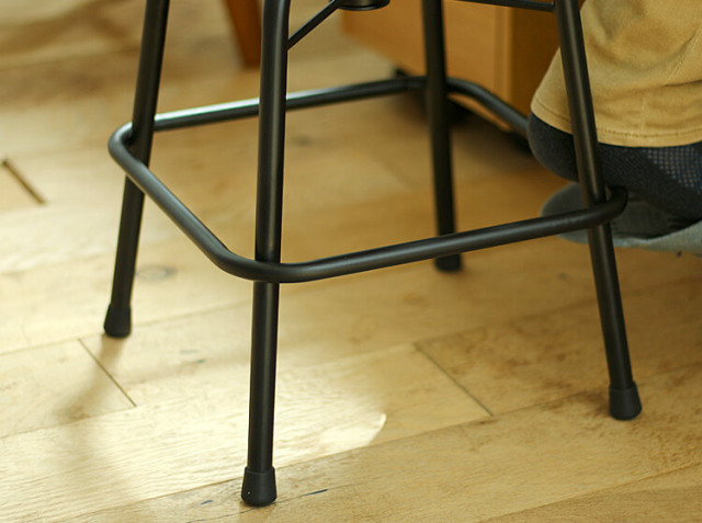高さは43cm~55cmまで調整が可能。お好みの高さに調整したときに、脚もとの足置きに脚を置いてリラックス♪珈琲を飲みながらリラックスしたり、読書したりしてもラクラクですよ♪