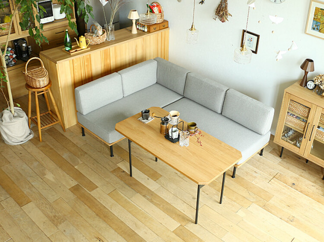 同シリーズのダイニングテーブルやカウチソファーと合わせて使えば、統一感のあるナチュラルダイニングの完成ですね。ただ同系色のカラーでインテリアを揃えると無難にまとまりますが、単調になりすぎることもありますので、天然木を使った収納やポスターなどの小物に差し色を取り入れると、程よいメリハリが生まれて落ち着きのあるおしゃれな空間になりますよ。