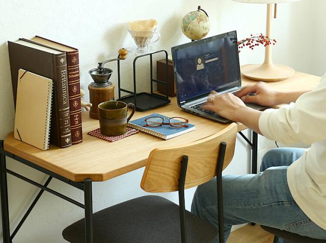 天板にはオーク材を使用していますので、温かみを感じるデザインが書斎やワークスペースをセンスアップしてくれますよ。
