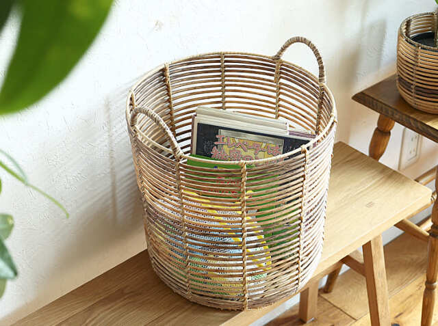 無造作に置いておくと雑多な印象になってしまう小物も、ナチュラルな雰囲気のかごに収納するだけで、お部屋が整って見えますよ。ざっくりと詰め込むだけで洗練された雰囲気に見えるので、片づけも楽しくなりそうです♪