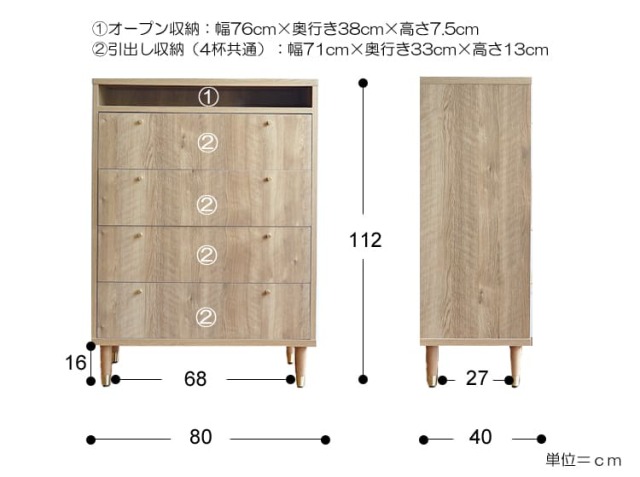 本体:幅 80cm × 奥行き 40cm × 高さ 112cm