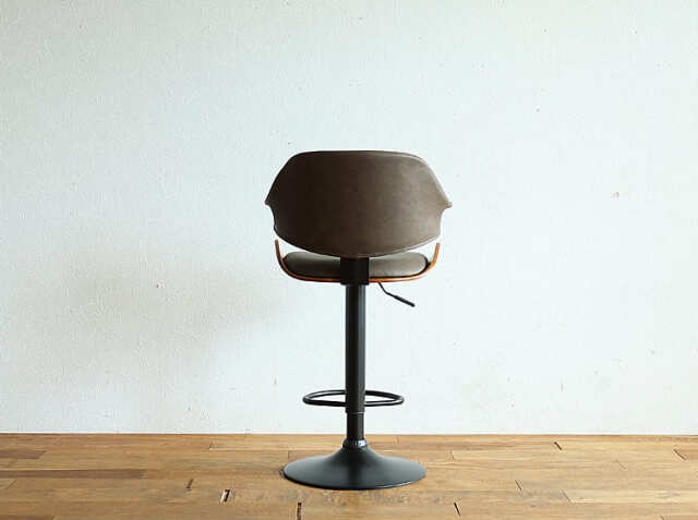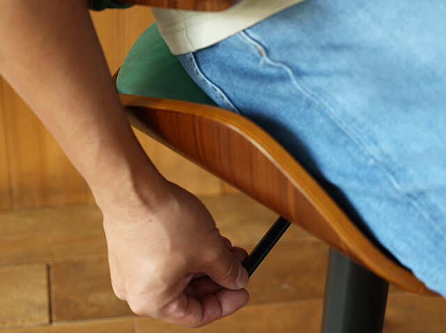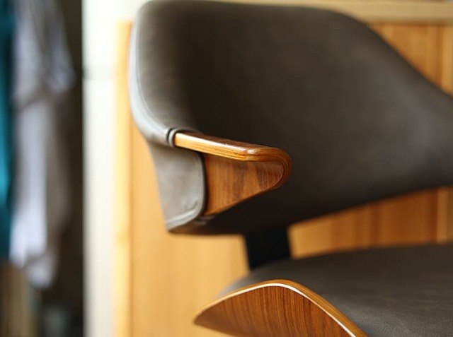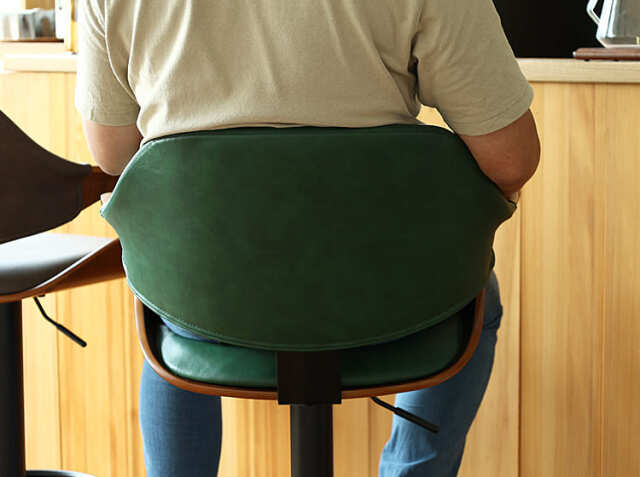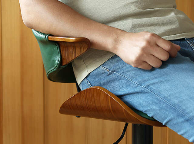 ただデザインがどれだけ素敵でも、使い勝手が悪ければ意味がありません。こちらのカウンターチェアは、360度回転式ですので、少し狭いスペースに置きたい人にもおすすめ。高さも91cmから112cmの間で調節ができますので、カウンターテーブルなどの高さに合わせることが可能です。そして背もたれから肘置き部分までの緩やかな曲線は座ったときに体にフィットしてくれて、包み込まれたような安心感が生まれます。座面はウレタンを詰め込むことで、程よい弾力となっていますので長い時間座っていても疲れにくいですよ。