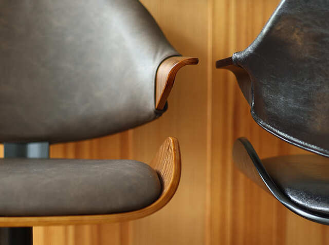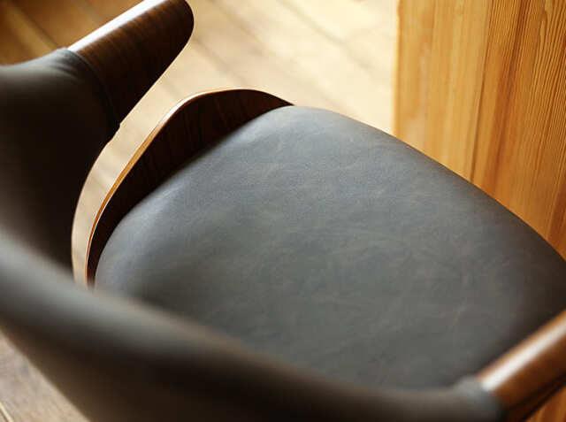 座面:天然木突板貼り合板(ラッカー塗装)、合成皮革(PUレザー)、ウレタンフォーム