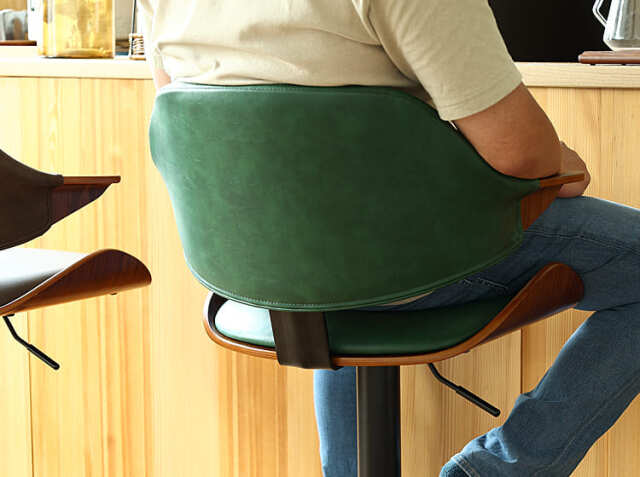こちらのカウンタチェアは背もたれがあるタイプ。背もたれがあると、腰回りを支えてくれるため姿勢を保ちやすく、長時間座っても疲れにくくなっています。緩やかな曲線を描いた座面や背もたれ部分は、身体をしっかり支えてくれて長時間座っていても疲れにくいのが嬉しいポイント。カフェタイムをのんびり、ディナーやお酒を楽しんだりといろんなシーンで快適に過ごせますよ♪