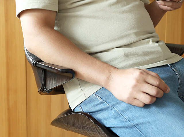 肘置き部分がることで、ゆったりとくつろぐことができるはもちろんですが、立ったり座ったりする際の動きをサポートしてくれる役割もありますよ。また独創的なデザイン性を感じる曲木を使ったひじ掛けとなっています。