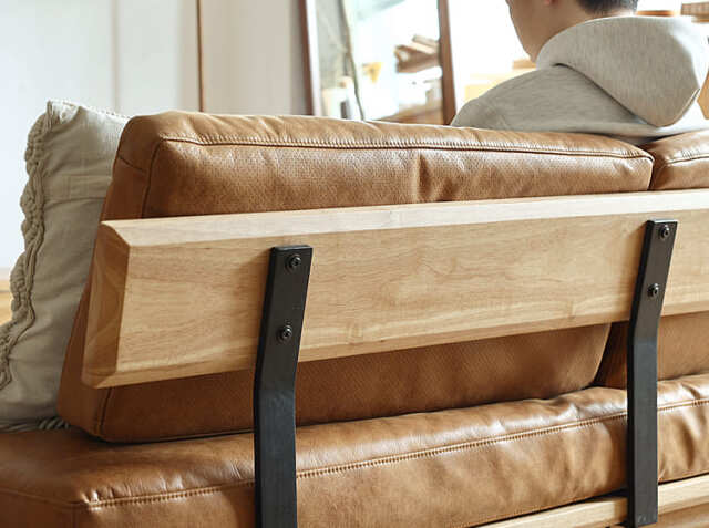 こちらのソファーの背板は、無垢材ならではの綺麗な木目が特徴です。お部屋の壁際に配置するのも良いですが、背板が見えるように配置しても背面から見たデザインが素敵ですよ♪