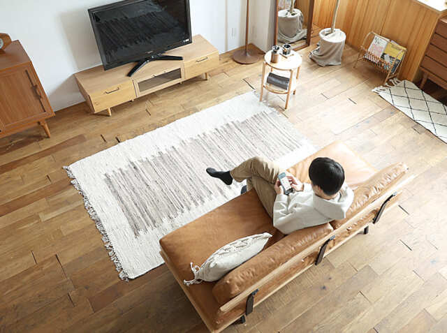 ゆったりとくつろげるボリュームのある佇まい。リビングの中心的存在のソファーだけに、こちらのソファーは置いてあるだけで空間に存在感を与えてくれます。横幅は182cm。大人の方が2人で使って、ゆったりとくつろげるサイズ感。あぐらをかいてリラックスしたりもできますよ♪