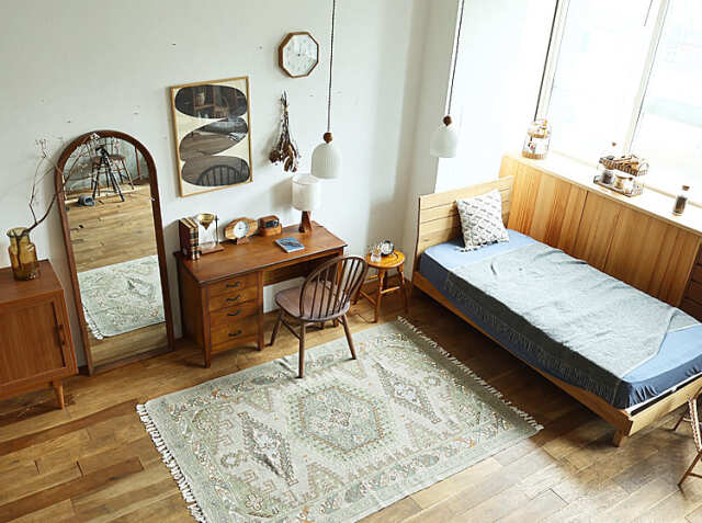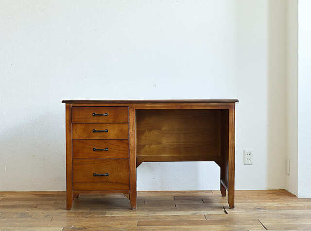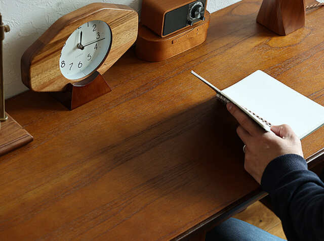 直線的なデザインがスタイリッシュで、温かみを感じるミンディ―材を使用したデスク。お気に入りのアンティークアイテムなどを天板に飾ったりすることでお部屋の中での“好きな場所”ができますよ♪