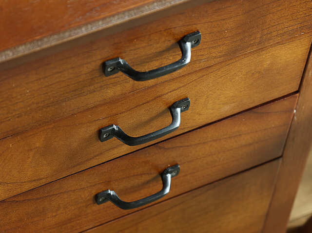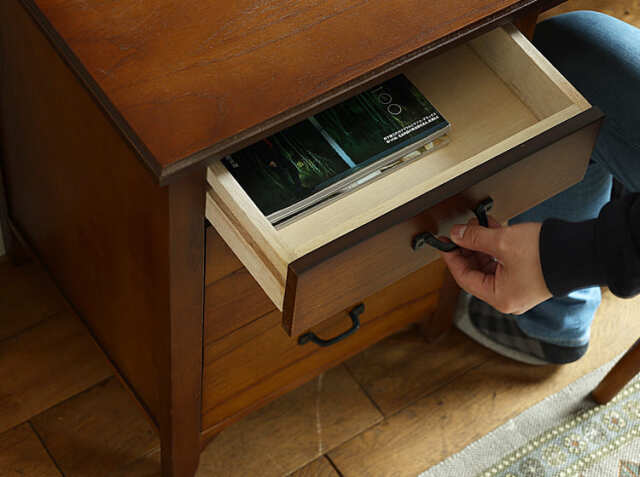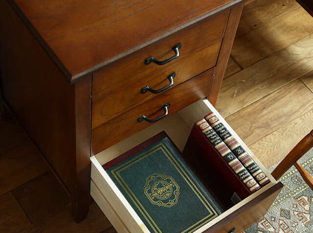 書斎やワークスペースの小物を収納するのに便利な上段2杯の引出しは、雑多に散らかりやすい文具などを収納したりするのにとても便利♪