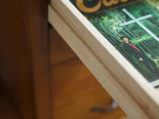 天板にはラッカー塗装が施されていますので、紙1枚を敷いて書きものをすることもできますよ。