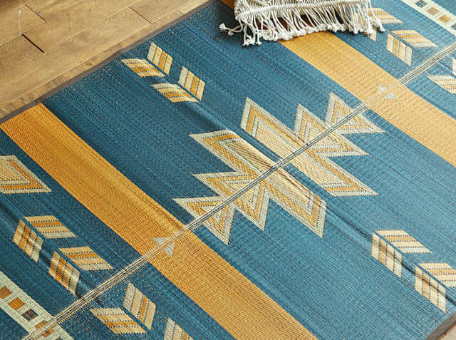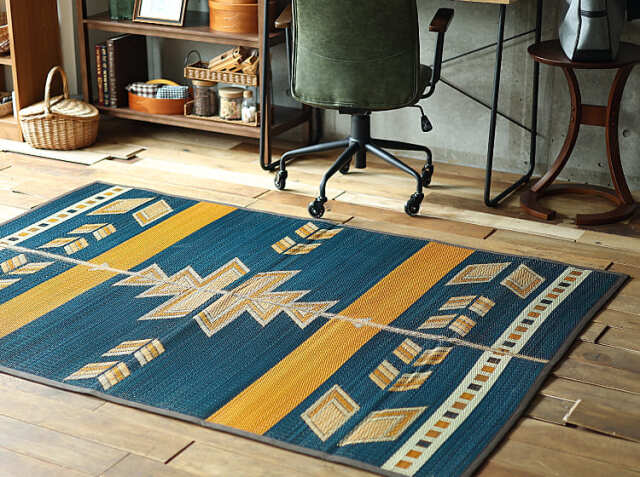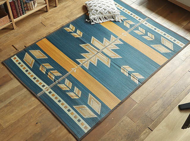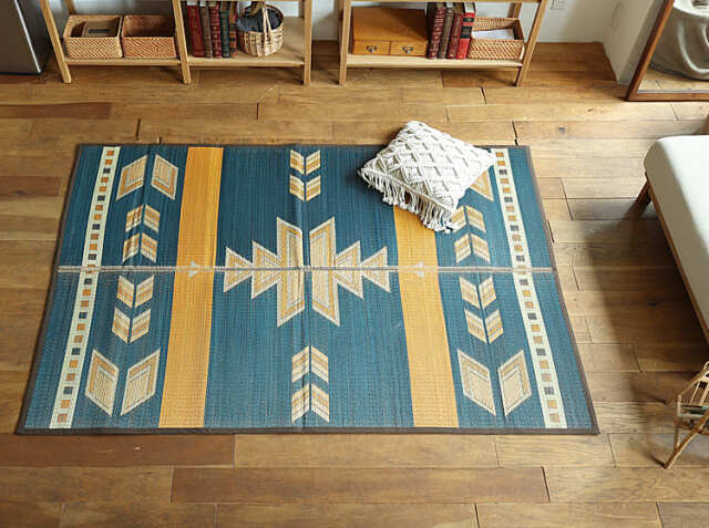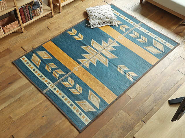 ヴィンテージ感溢れるネイティブ柄のい草ラグ。これからの季節、素足で歩いても気持ちよく、夏のインテリアと相性の良いネイティブデザインと、い草本来の素材感や色味の組み合わせが絶妙なアイテム♪