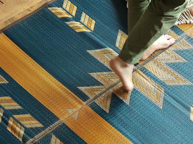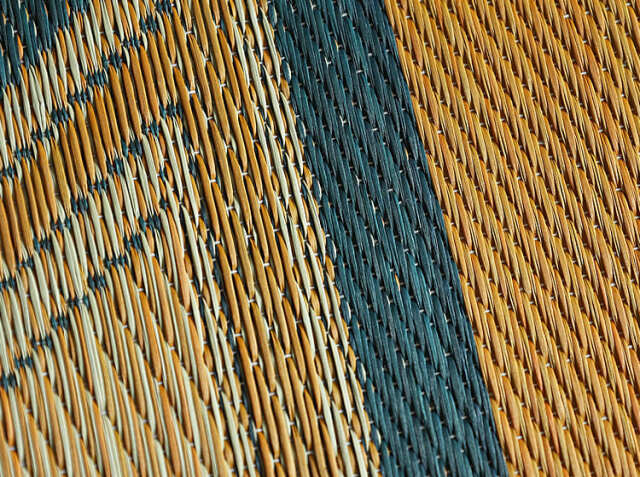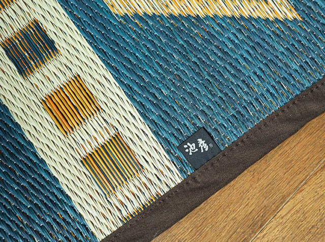 IGUSA RUGの色柄はプリントではありません。伝統の技術「先染め」によるもの。そこに生成り色が加わることで味わい深く、そして奥行きのあるデザインに仕上がっています。