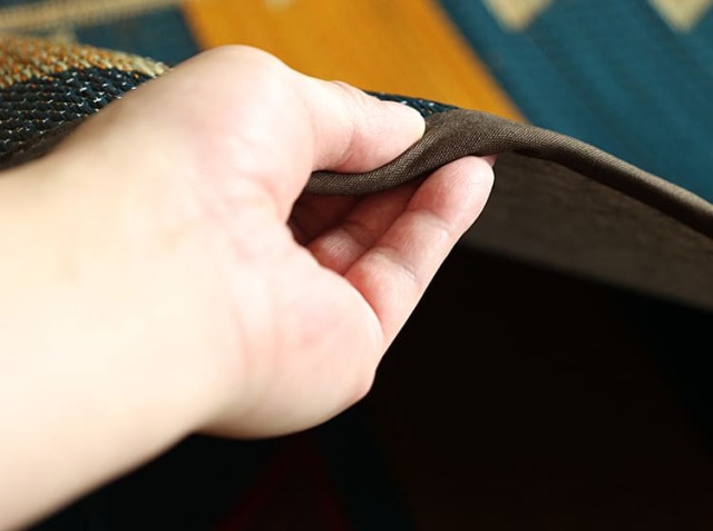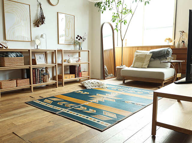 い草本来の素材感や色味の組み合わせが絶妙なラグ。夏を快適に、おしゃれに過ごしたい方にオススメですよ。またい草には、空気をキレイに、さわやかにする消臭効果もあると言われていますので、より快適にお過ごしいただけますよ。