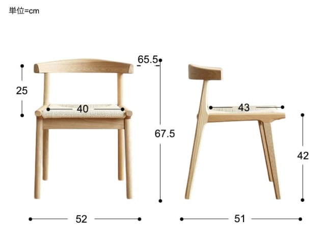 幅 52cm × 奥行 51cm × 高さ 67.5cm(座面高 42cm)