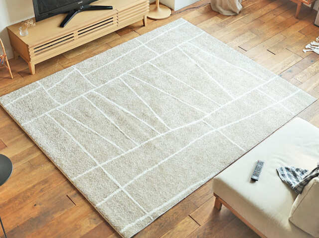 ナイロン100%のサラサラとした肌触りと幾何学模様が特徴。足に触れた時にサラッとした肌触りは素足で過ごすのも気持ちい感触♪夏は涼しく、床暖房やホットカーペットにも対応していますので、冬は温かにご使用いただけます。