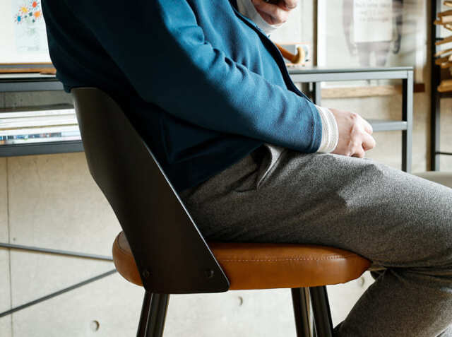 緩やかな曲線を描いた背もたれ部分は座ったときに体にフィットしてくれて、座面には硬めのウレタンを詰め込むことで、程よい弾力がうまれ長い時間座っていても疲れにくい仕様に仕上げています。