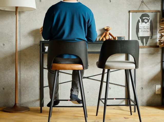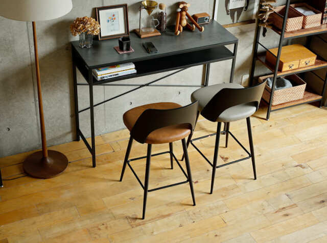 カウンターキッチンに複数台並べて使用することもおすすめですが、壁際にカウンターデスクを置いて、カウンターチェアとして使うのもおすすめ♪