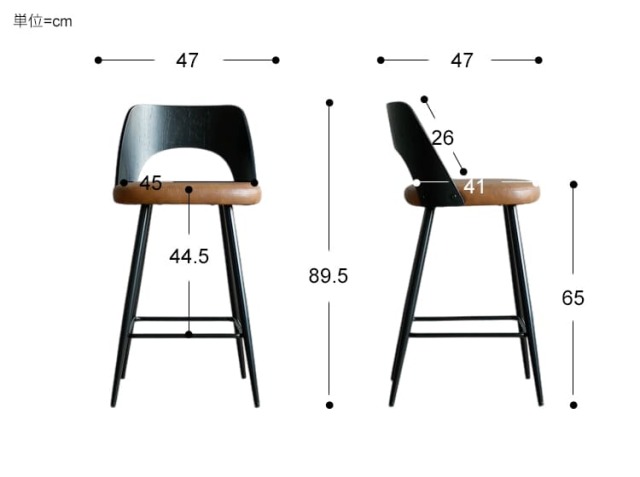 幅 47cm × 奥行き 47cm × 高さ 89.5cm(座面高:65cm)