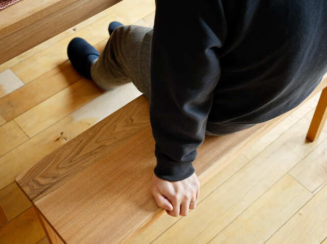 淡い茶褐色と優しい風合いの木目が特徴のくるみ無垢材を使用した幅100cmのダイニングベンチ、Aki(アキ)。