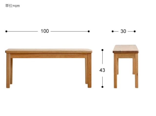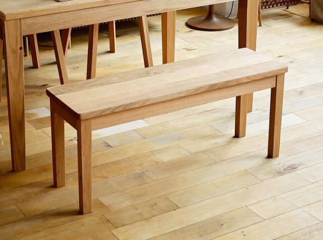 テーブルのサイズには、80cm、120cm、135cm、150cm・・・と様々なサイズがありますが、こちらのベンチは幅100cmですので幅120cm-140cmのテーブルにピッタリのサイズとなっています。