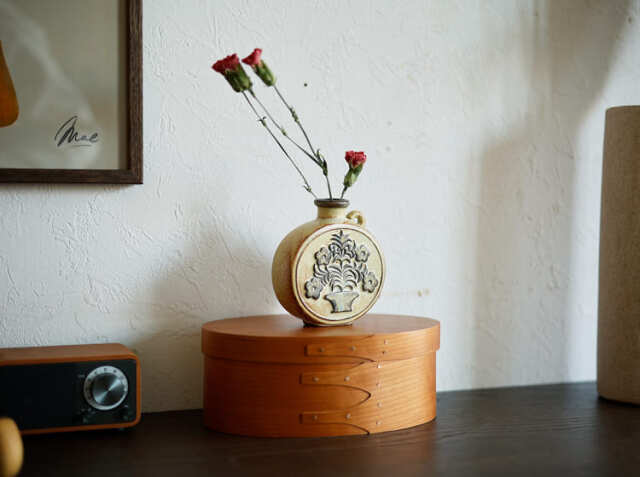 収納棚の上に雑多に置くだけでも、絵になるベース。クラシカルなドライフラワーなどを添えて飾るとアンティークな雰囲気のお気に入りの場所になりますよ。