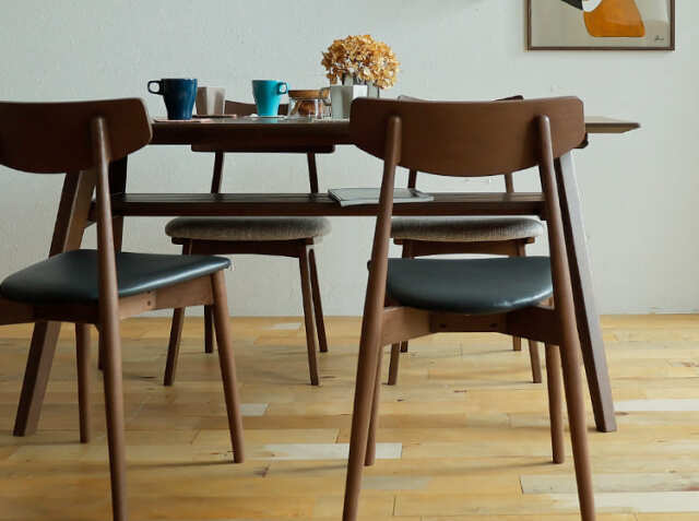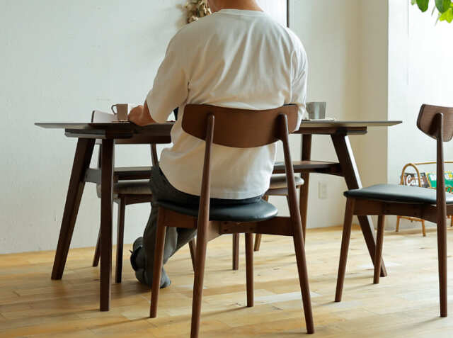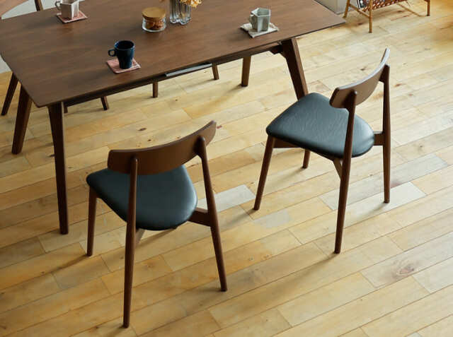 お掃除をする時って、意外とダイニングチェアの出し入れは面倒くさい、、。そんな時こちらのダイニングチェアは幕板がないテーブルと合わせるとテーブルの下に綺麗に収まり、ストレスなくお掃除をしていただくことがきますよ♪