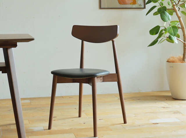 座る人の身体にフィットするような美しい曲線。長く使えるよう、飽きのこないシンプルなデザインであるとともに、アッシュ無垢材を使用したブラウンフレームのうっすらと木目が主張することで、引き締まった印象の中に温かみも感じる風合いに仕上げています。