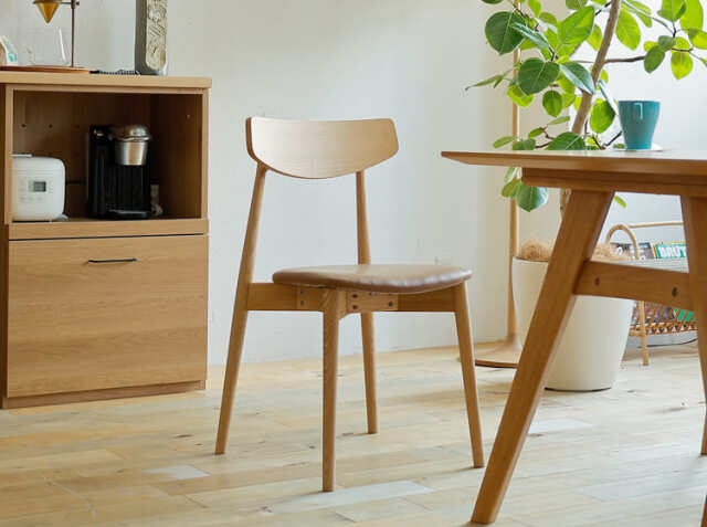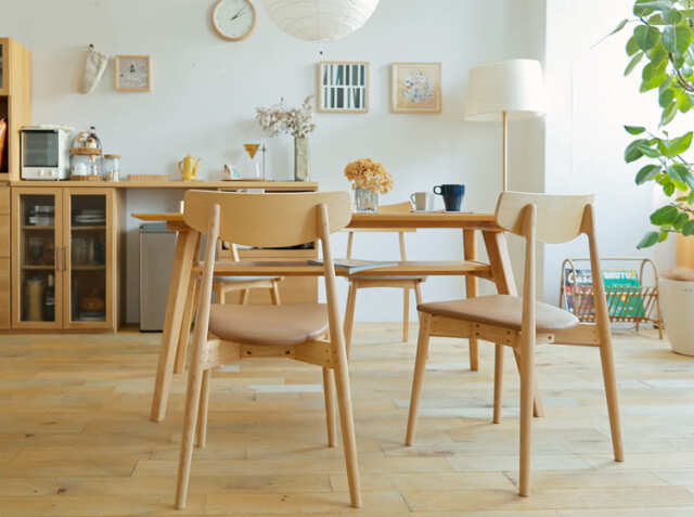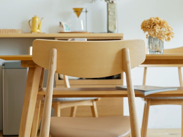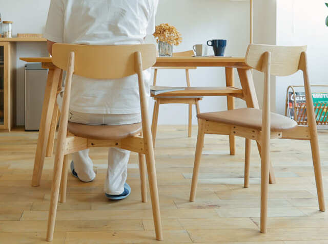 お掃除をする時って、意外とダイニングチェアの出し入れは面倒くさい、、。そんな時こちらのダイニングチェアは幕板がないテーブルと合わせるとテーブルの下に綺麗に収まり、ストレスなくお掃除をしていただくことがきますよ♪