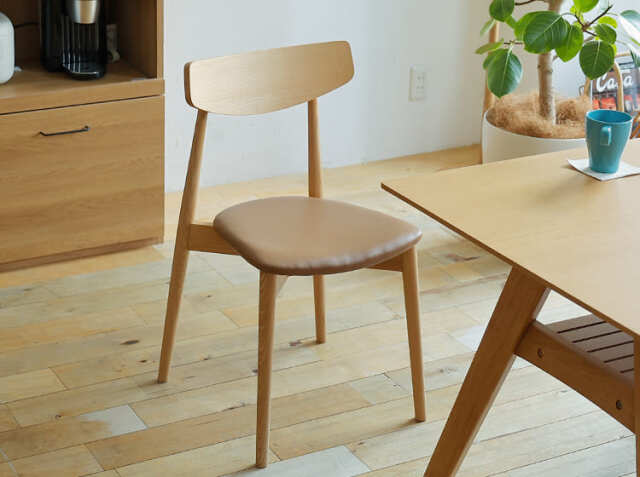 チェアの座面部分は程よい硬さに仕上げていますので、長い時間座っていても疲れにくい設計に。また座面の素材にはPVCレザーを使用していますので、飲みものをこぼした時にはサッと拭き取ることができますので掃除がラクラクですよ。