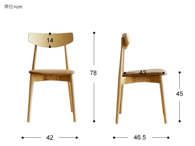 本体:幅 42cm × 奥行き 46.5cm × 高さ 78cm(座面高 45cm)