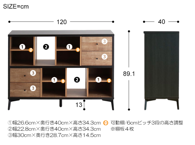 全体:幅 120cm × 奥行き 40cm × 高さ 89.1cm