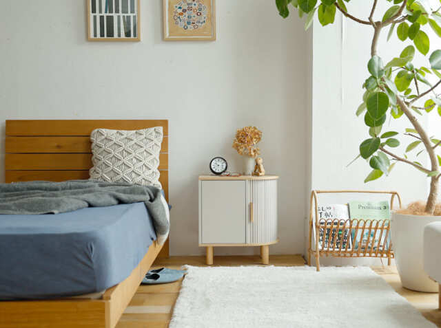眠る前の読書が毎日の楽しみという方も多いのではないでしょうか。眠気がやって来たら、ベッドに入ったまま本や眼鏡をベッドサイドのキャビネットにすぐに置くことができます。眠気がじゃまされることなく、ゆったりとした気持ちで眠りにつけますね。置き場所の定位置にもなるので、部屋の中で迷子になることもありません。