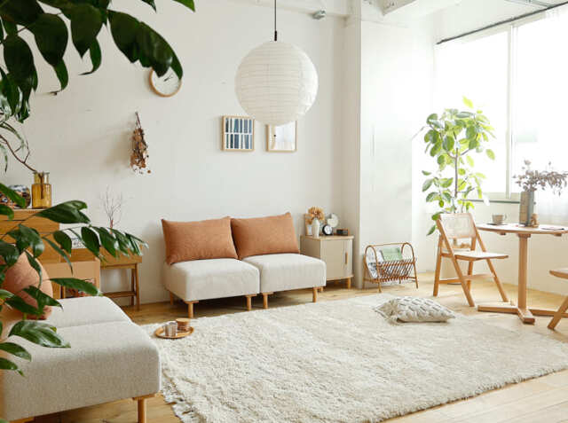 一人暮らしから二人暮らしへ暮らしは変化します。引っ越しで部屋の形が変わる。在宅ワークが始まり、空間の使い方が変わる。子供が生まれ、家族構成が変わる。ユニットソファーは、そんな暮らしの変化にフレキシブル(柔軟)に対応できるソファーです。