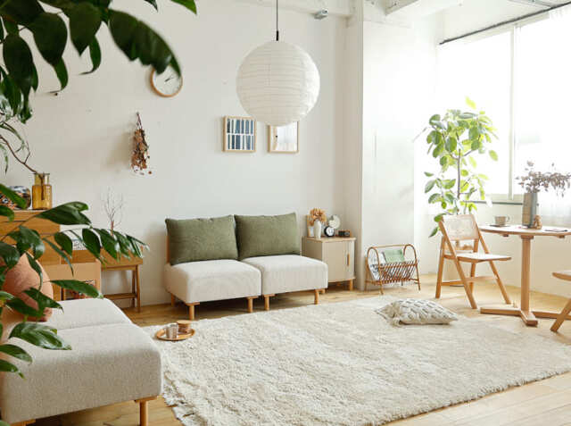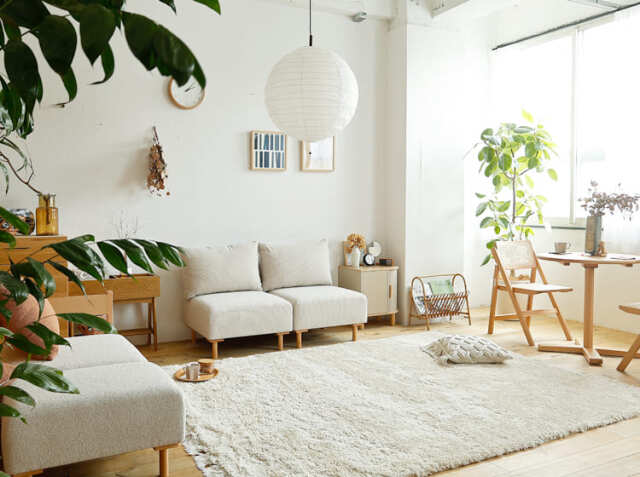 アイボリーは、北欧ナチュラルスタイルの定番カラー。柔らかな白は、空間を明るく広く見せる効果があります。
