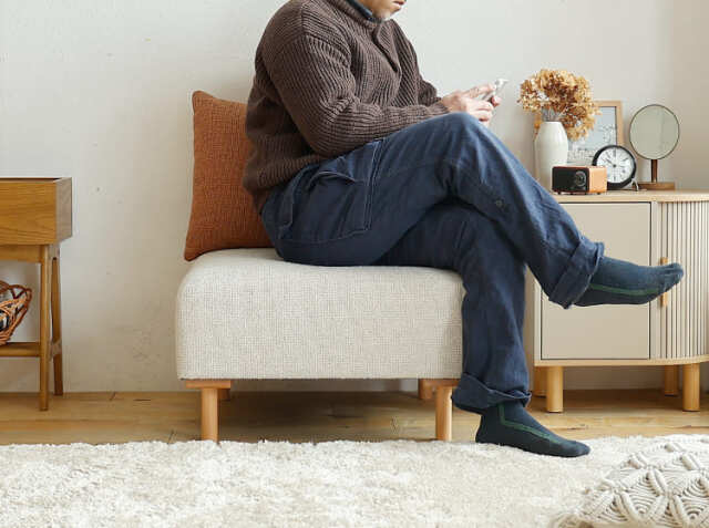 脚部があることで、床との間に空間が生まれ、視覚的な軽やかさを実現。重厚なソファと比べ、圧迫感が少なく、部屋を広く見せる効果もありますよ。