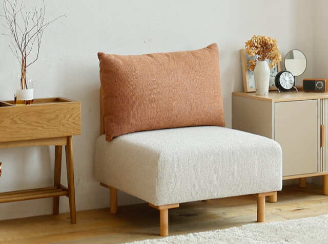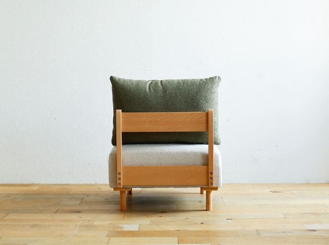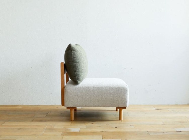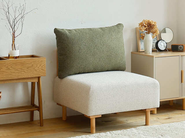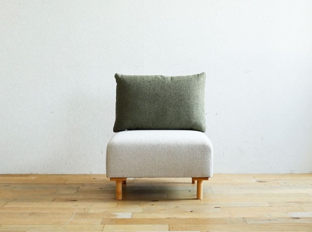 自由に組み合わせる、暮らしに寄り添う幅64.5cmの1人掛けユニットソファー、SELF(セルフ)。背クッションのカラーはアイボリー、モスグリーン、テラコッタオレンジの3色展開となっています。