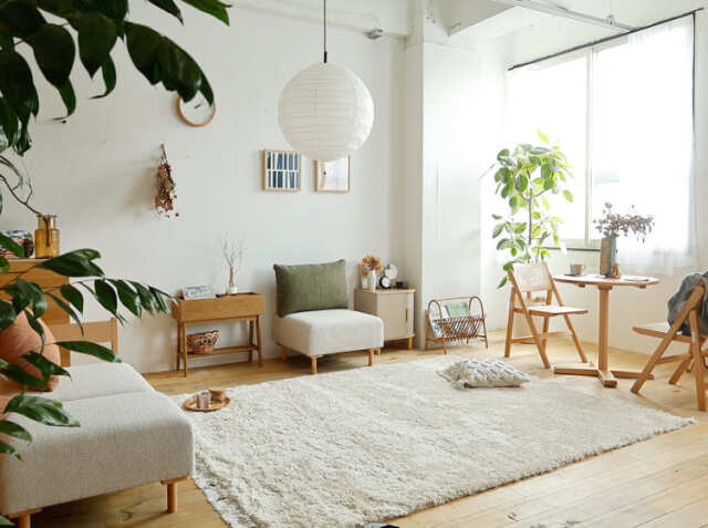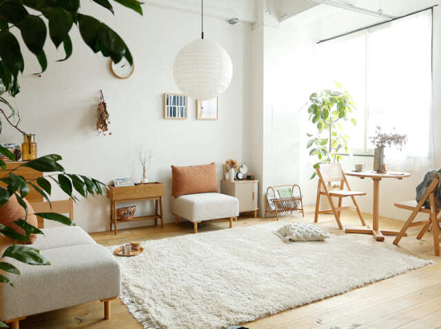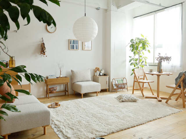 アイボリーは、北欧ナチュラルスタイルの定番カラー。柔らかな白は、空間を明るく広く見せる効果があります。