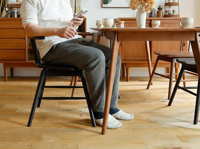 たとえば、食事が終わって立ち上がるとき。通常の椅子では、テーブルから体を引きながら立ち上がる必要がありますが、回転式なら椅子をくるっと外側に向けるだけで、スムーズに立ち上がれます。これは特に、膝や腰に負担を感じやすい方、妊娠中の方、高齢の方にとって大きなメリットです。