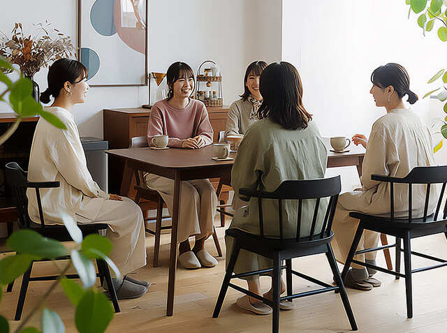 友人を招いてのホームパーティー。みんなでテーブルを囲んで話が盛り上がると、自然と体の向きを変えながら会話したくなります。回転式チェアなら、話し相手に体ごと向き直るのも自然にできて、会話がより弾みますよ。