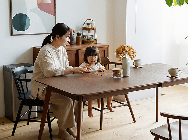 そして、このチェアの一番の魅力は「回転する」こと。食事中に立ち上がるとき、子どもに話しかけるとき、ちょっと振り返りたいときなど、椅子をくるっと回すだけで、スムーズに動ける。この小さな動作のストレスがなくなるだけで、毎日のダイニングタイムがぐっと快適になります。特に小さなお子さんがいるご家庭や、立ち座りが多い方にとっては、一度使ったら手放せない機能ですよ。