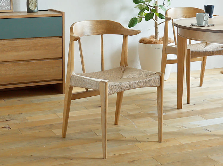 アッシュ無垢材とペーパーコードを組み合わせた、伝統的な北欧名作チェアのような上品な佇まいにデザインされたダイニングチェア。