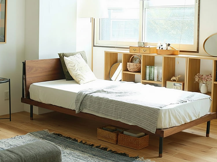 ウォールナット棚付ベッド Walt(ウォルト)高さ2段階タイプ
