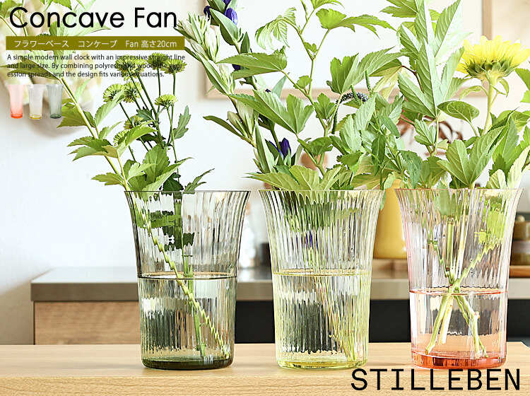 デンマークで活躍するディテ・レクウェグ(Ditte Reckweg)とイエレーナ・ノーデントフト(Jelena Nordentoft)の二人の女性デザイナーによって2002年に誕生したデザインデュオ「STILLEBEN(スティルレーベン)」。コンケーブグラスウェアは、エレガントで少し内側にカーブしたガラスシリーズで、使用しているクリスタルガラスは、耐久性や強度 を犠牲にすることなく、透明で薄く繊細な仕上がりを可能にする特質を持ち、手に取りたくなる美しさを表現しているフラワーベース Concave Vase Fan 高さ20cm。カラーは、モスグリーン・ローズ・Citrin(レモン)の3色からお選びください。